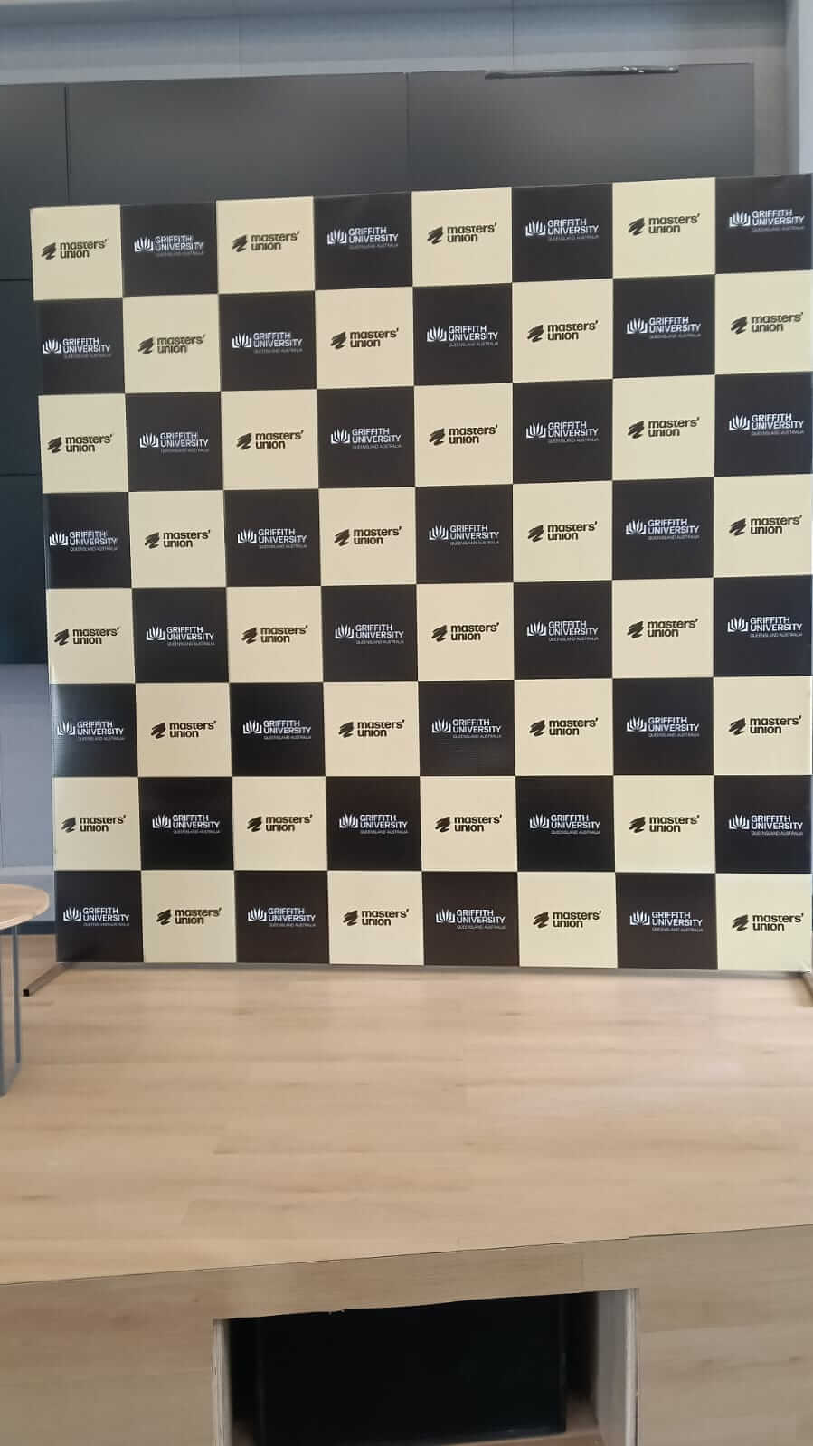 Step-and-repeat logo walls, product launch backgrounds, media walls and press meet backdrops.