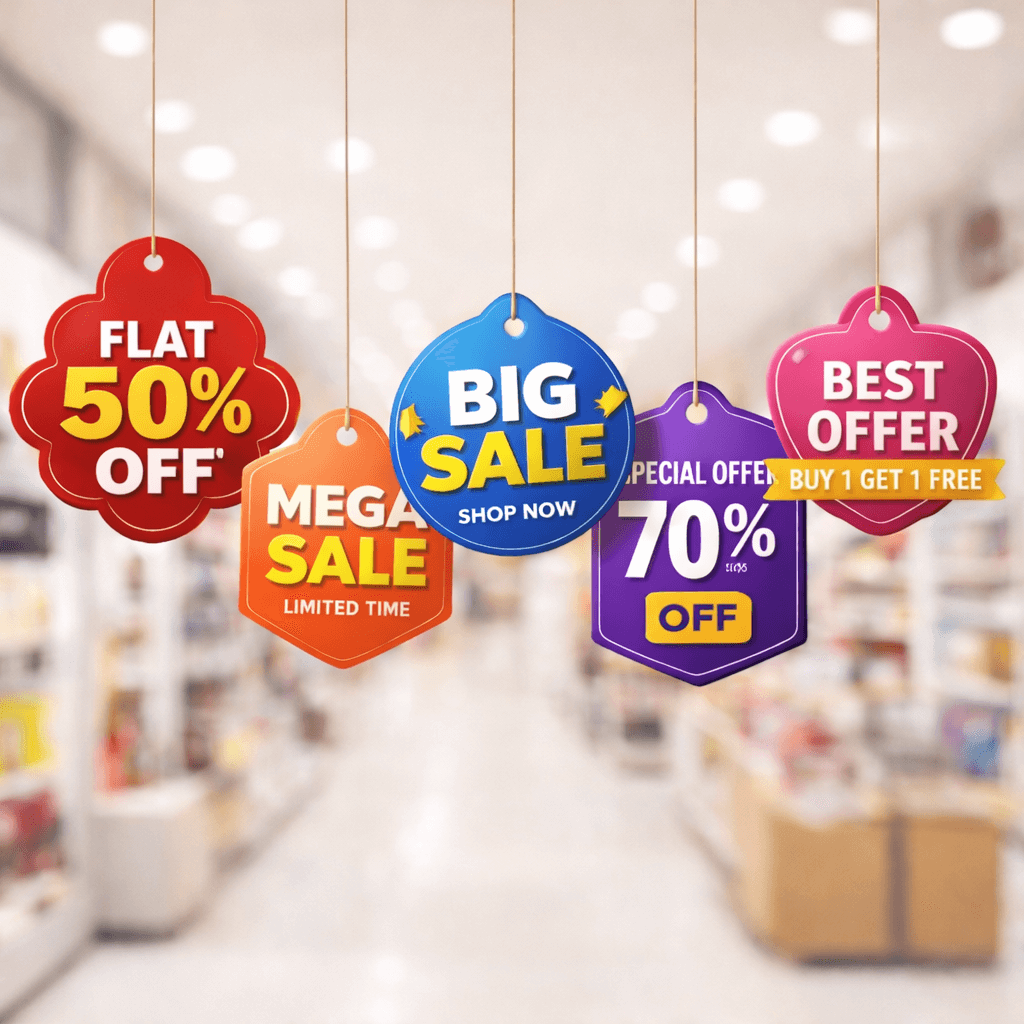 A Dangler is a hanging promotional display used inside shops, malls, supermarkets, showrooms, and retail spaces. It hangs from the ceiling or shelves and gently moves with air, naturally catching customer attention. Because of its placement and movement, a dangler delivers your message exactly where buying decisions are made.